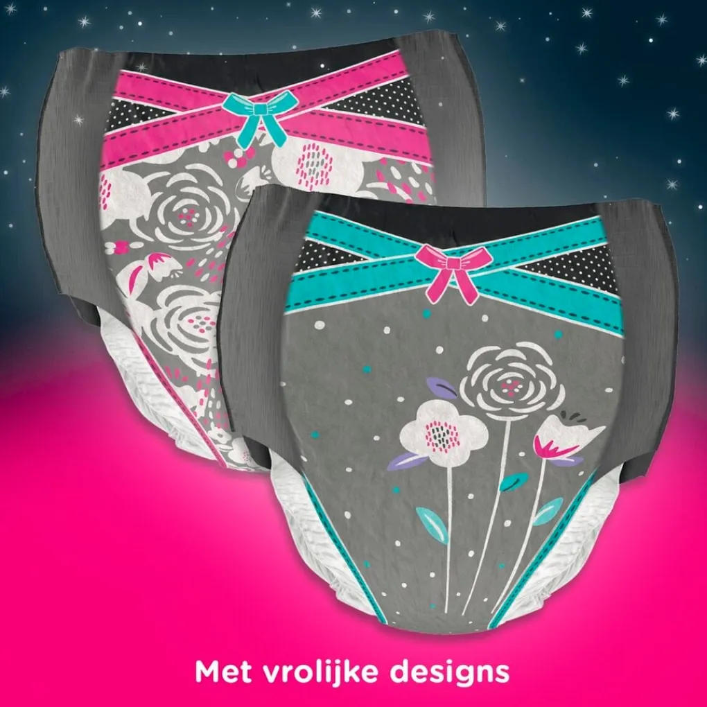 DryNites Girls 8-13 Jaar Nachtbroekjes voor meisjes van 8 tot en met 13 jaar oud zijn extra absorberend, bieden maximale bescherming en speciaal ontwikkeld voor meisjes.
