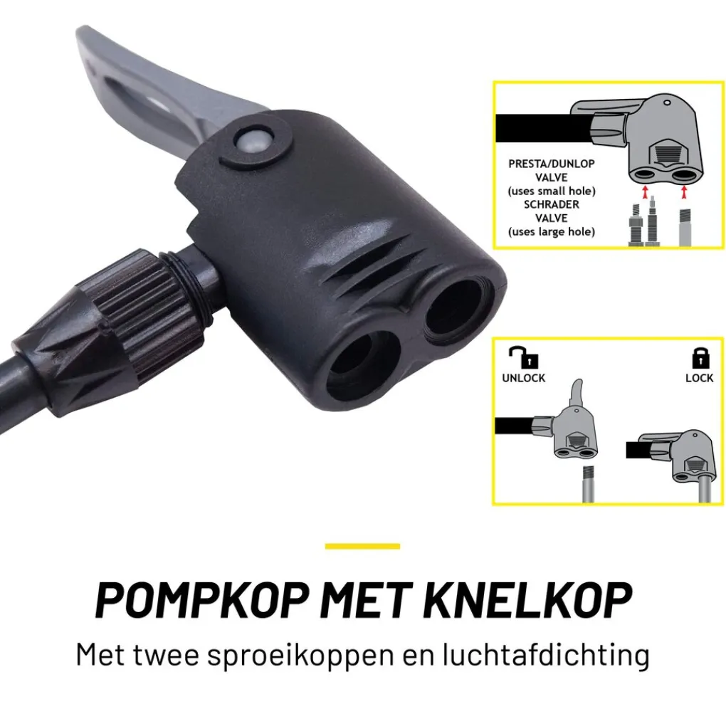 - Pompkop met knelkop voor stevige aansluiting tijdens het oppompen