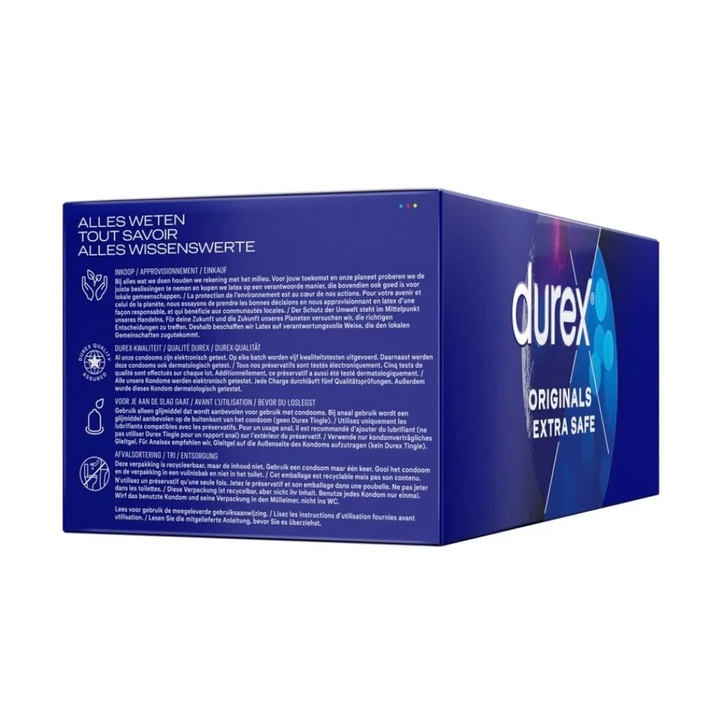Durex Extra Safe Condooms zijn speciaal anatomisch gevormd voor extra gevoel en comfort. Dankzij de pasvorm is het condoom gemakkelijk om te doen en sluit het extra goed aan.