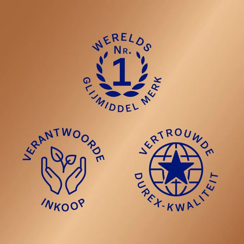 Gebruik alleen glijmiddel dat wordt aanbevolen voor gebruik met condooms. Bij anaal gebruik wordt een glijmiddel aanbevolen op de buitenkant van het condoom (geen Durex Tingle). Gebruik een condoom maar één keer. Om het condoom van de eerste keer in de juiste richting te openen, moet je ervoor zorgen dat het Durex-logo zich in de richting van de penis bevindt. Hersluitbaar.