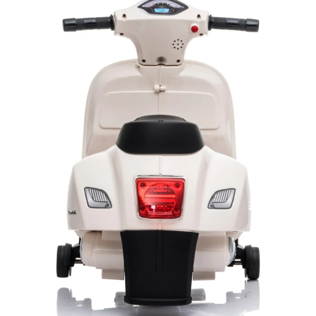 De Vespa is geschikt voor kindjes van ong. 1,5 tot 3 jaar met een max. gewicht van 25 kg. De scooter werkt op een oplaadbare batterij, deze wordt samen met een lader meegeleverd.