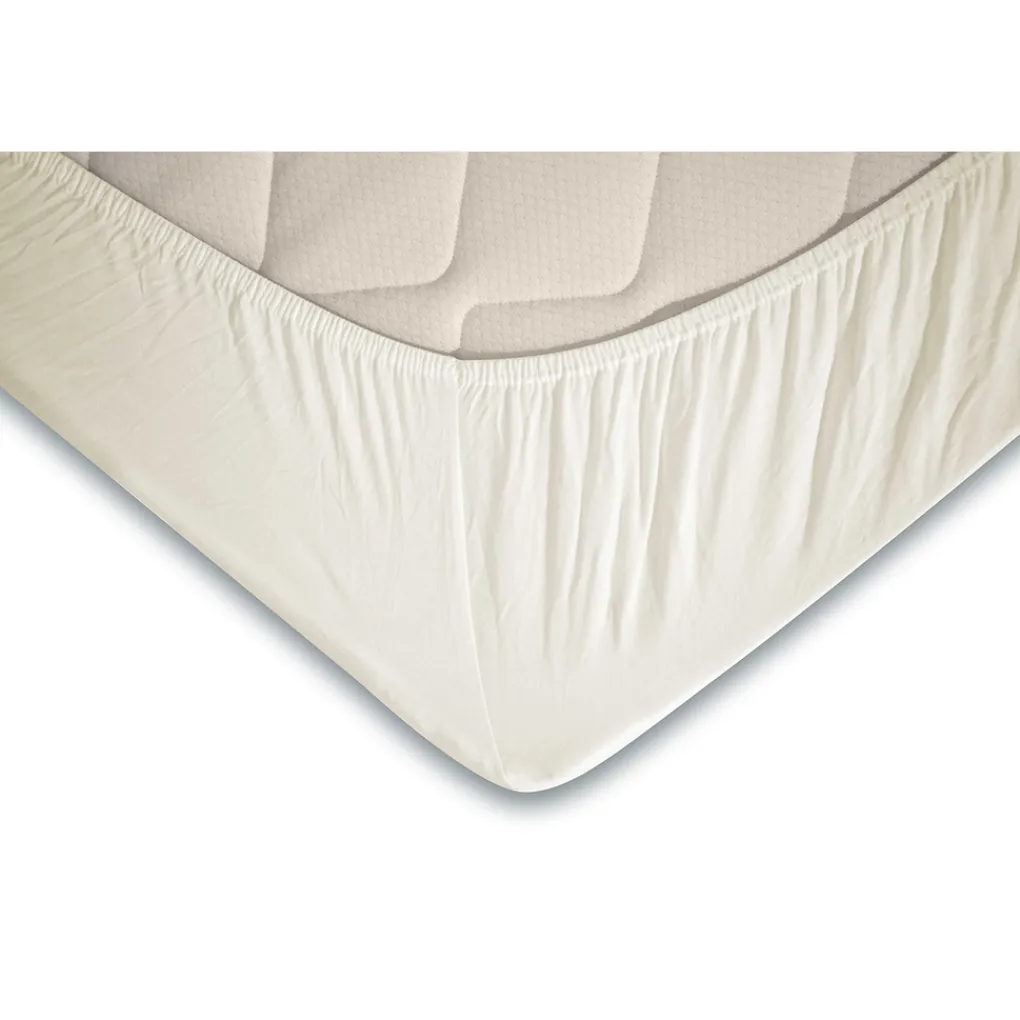 Elegance jersey stretch topper hoeslaken ivoor, die zowel geschikt is voor gewone bedden, topdekmatrassen als voor hoge boxspring bedden. Jersey is een gebreide stof, wat heerlijk zacht aanvoelt en zorgt voor een warme aangename instap. Deze stof is tevens vocht absorberend en ventilerend.