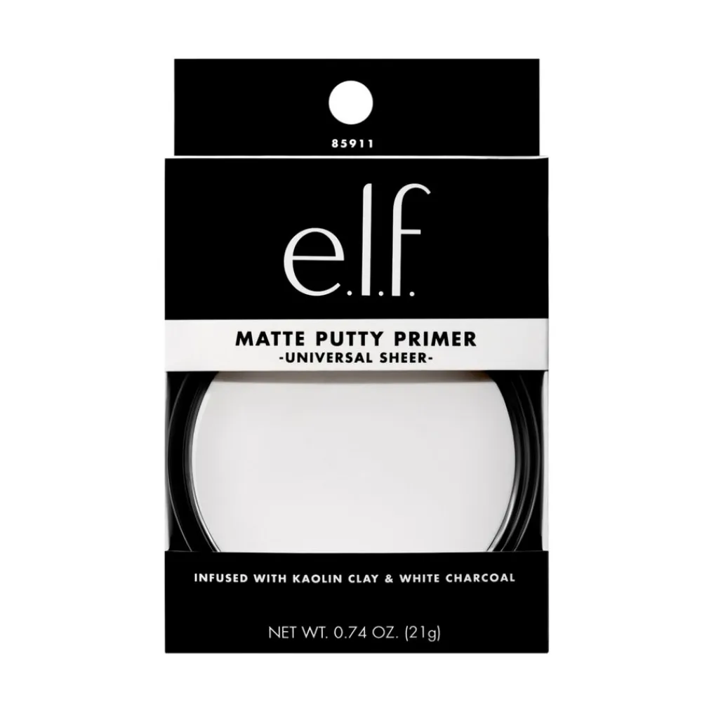 De fluweelzachte formule van deze e.l.f. Universal Sheer Matte Putty Primer geeft een matte finish. De huidperfectionerende primer is verrijkt met kaolien en witte houtskool. Hij absorbeert overtollige talg voor een matte finish.