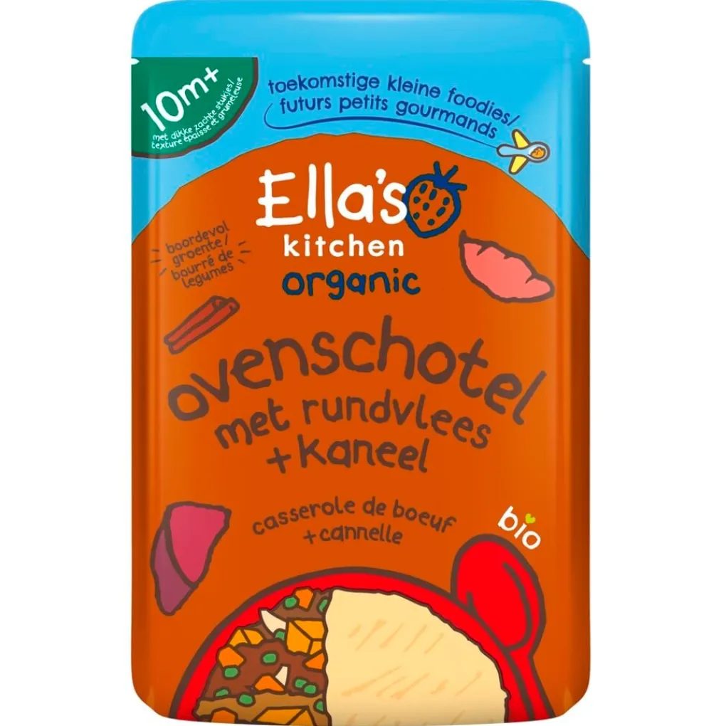 Ella’s Kitchen Organic 10M+ Ovenschotel met Rundvlees en Kaneel is 100% biologisch en bevat alleen van nature aanwezige suikers en zout. Het is ideaal voor thuis én onderweg.