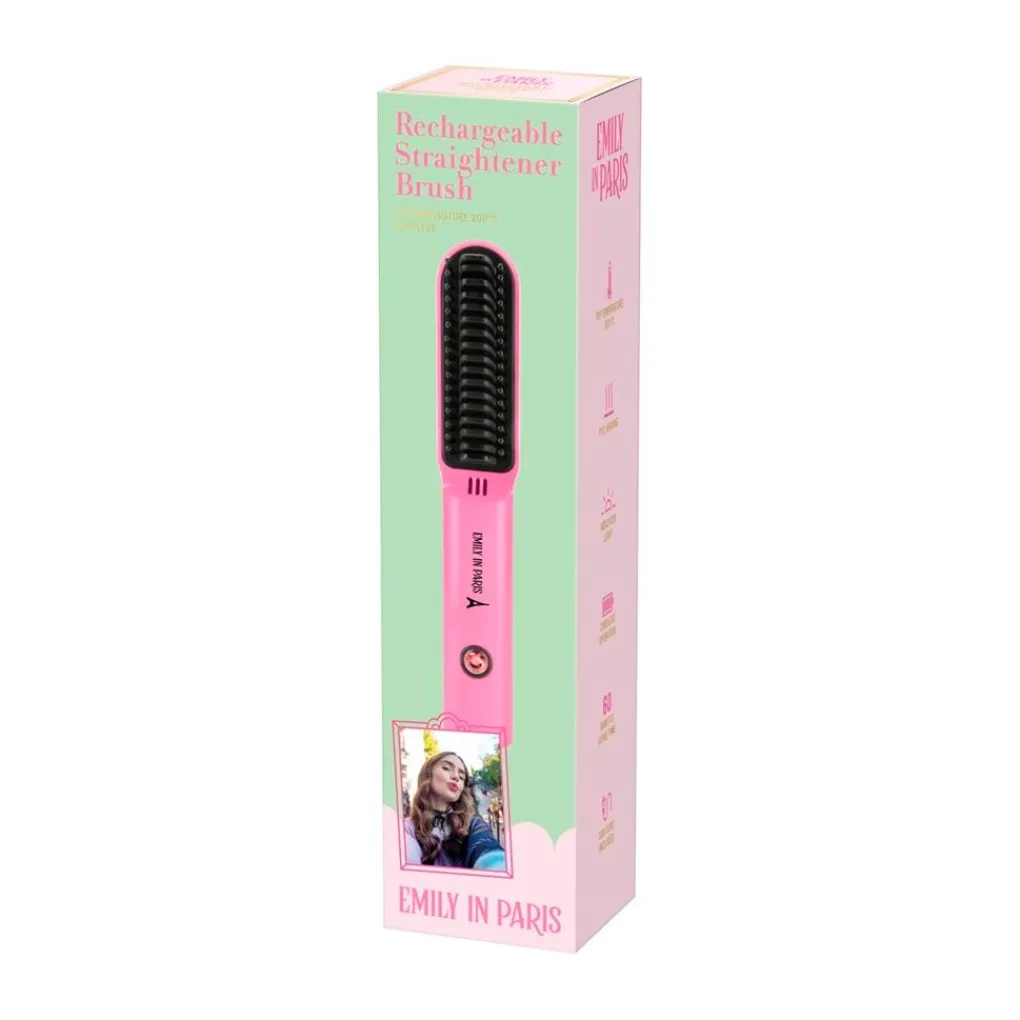 Voor een perfecte coupe gebruik je deze Emily in Paris Stijlborstel. Hiermee borstel je je haar én maak je het tegelijkertijd steil. De borstel is oplaadbaar.