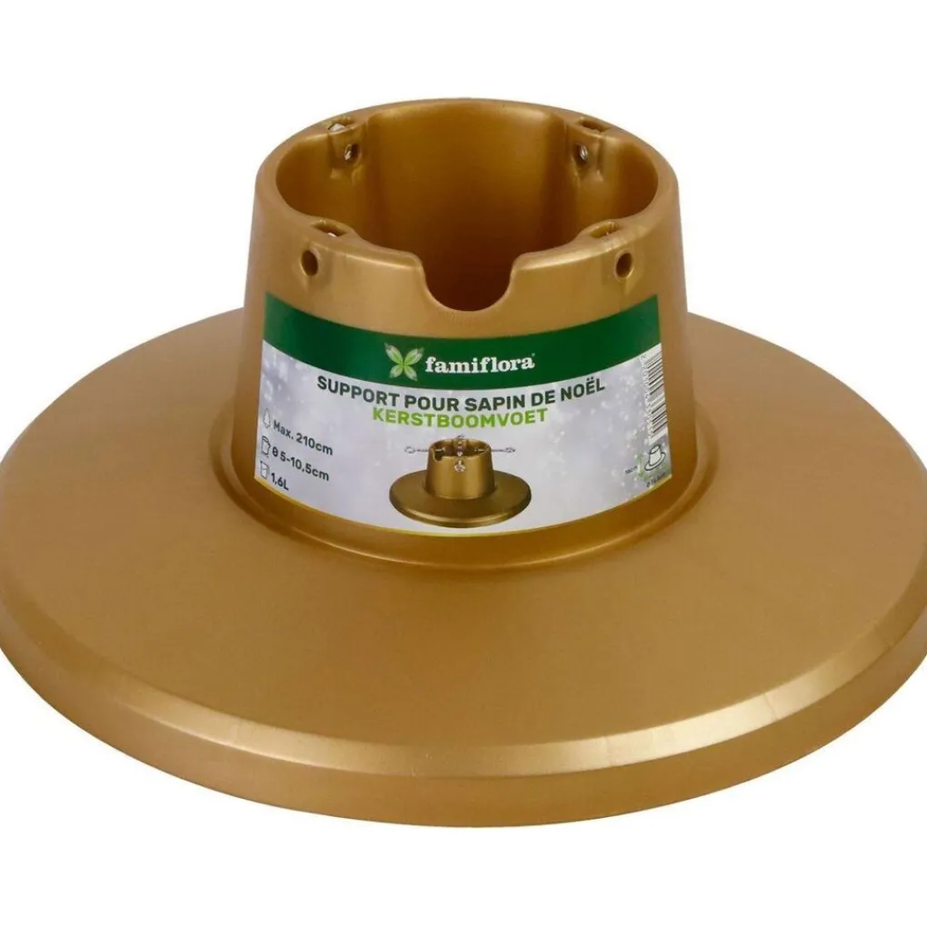 ✅Voor kerstbomen tot 2,1m hoogte✅Geschikt voor een kerstboom met Ø3,5-10,5 cm✅Kleur: goud✅Materiaal: stevig & duurzaam kunststof✅Afmetingen voet: Ø38,5cm x H16cm✅Met waterreservoir