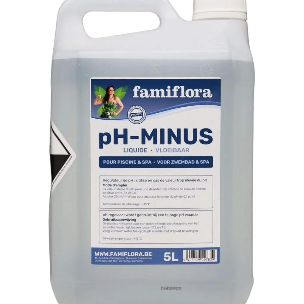 Voeg 20ml/m³ water toe om de pH-waarde met 0,1 te verlagen.