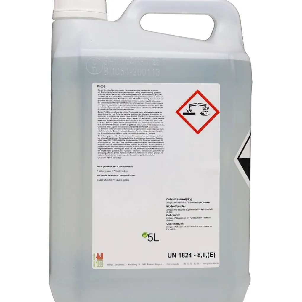 Voeg 2ml/m³ water toe om de pH-waarde met 0,1 te verhogen.
