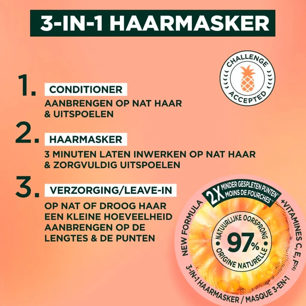 Hoe gebruik je het Garnier Fructis Pineapple Hair Food 3-In-1 Haarmasker?