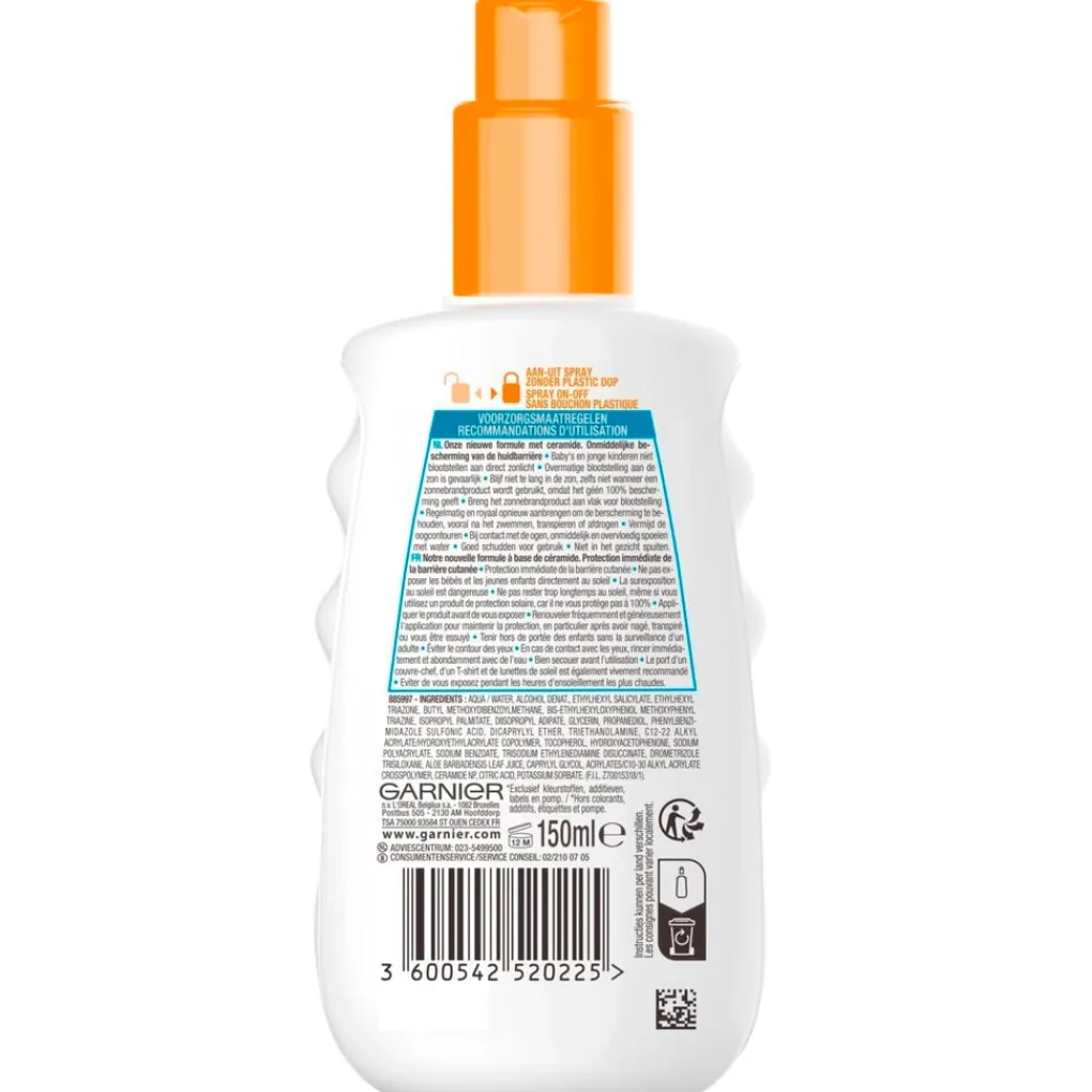 De Garnier Ambre Solaire Kids Sensitive Expert+ SPF50+ Hypoallergene Zonnebrandspray biedt zeer hoge bescherming tegen uv A- en uv B- en lange uv A-stralen.
