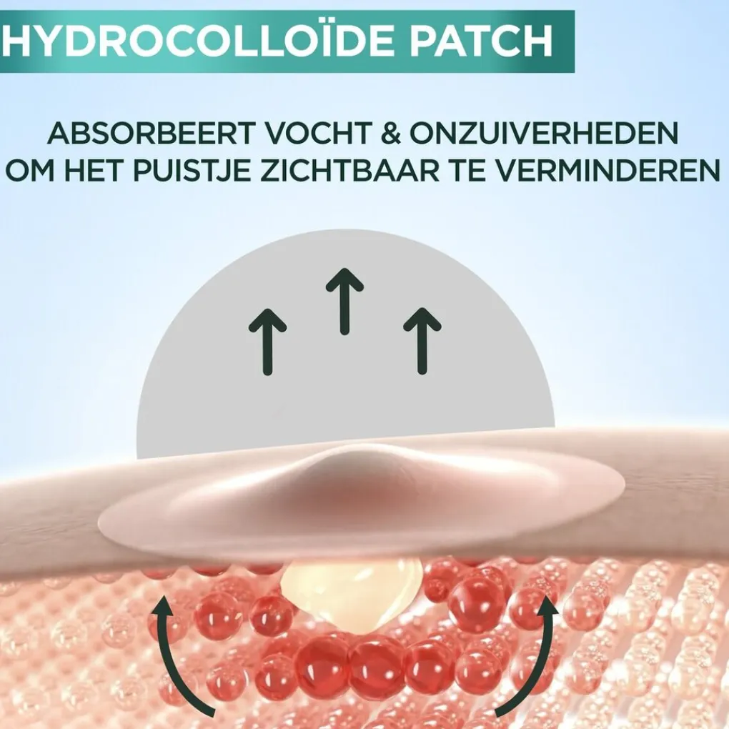 Garnier Pure Active Pimple Patches zijn ultradunne, doorzichtige hydrocolloïde patches. De patch vormt een beschermend laagje over puistjes, zo worden onzuiverheden geabsorbeerd en het puistje zichtbaar verminderd binnen acht uur*.