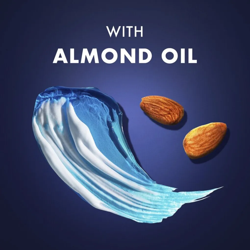 Ingrediënten: Aqua, Palmitic Acid, Triethanolamine, Isopentane, Glyceryl Oleate, Stearic Acid, Glycerin, Isobutane, Sorbitol, Parfum, Hydroxyethylcellulose, PEG-45M, Menthol, Linalool, Limonene, PVM/MA Copolymer, Glyceryl Acrylate/Acrylic Acid Copolymer, Prunus Amygdalus Dulcis Oil, Silica, Tocopherol, Lecithin, Ascorbyl Palmitate, Hydrogenated Palm Glycerides Citrate, CI 42053, CI 42090