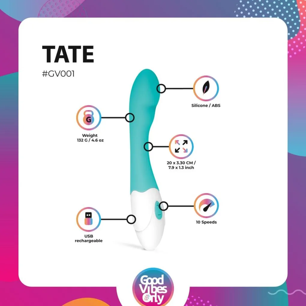 De Tate G-Spot vibrator is een echte klassieke vibrator. Door de stevige grip is de vibrator makkelijk vast te houden bij gebruik. En door de vorm vindt hij jouw intieme plekken met gemak. Daarnaast is de Tate vibrator zijdezacht en erg makkelijk te gebruiken. Met deze vibrator kun je alle kanten op, omdat hij overal mee naar toe kan, 10 intense vibratiestanden heeft en waterdicht is. De Tate vibrator kun je dus onder de douche én in bad gebruiken.