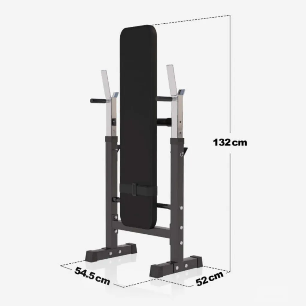 Met deze halterbank kun je een breed scala aan oefeningen uitvoeren, zoals bankdrukken, schouderdrukken, incline presses en dips. De verstelbare functies maken het mogelijk om verschillende spiergroepen te trainen onder diverse hoeken. De geïntegreerde diphandgrepen bieden extra veelzijdigheid voor je bovenlichaamstraining. Dankzij het gewatteerde kussen kun je comfortabel en veilig trainen.