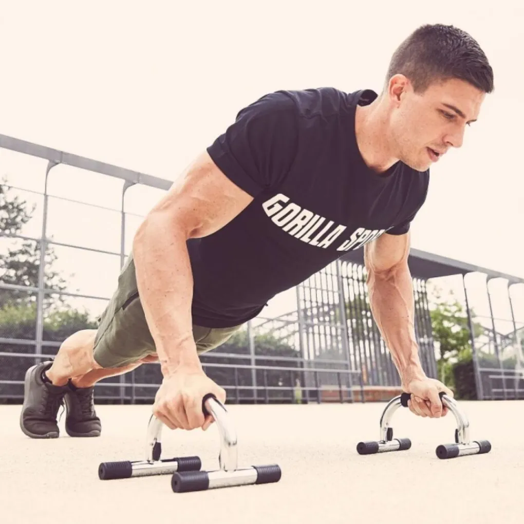 Met deze push-up handgrepen kun je verschillende push-ups uitvoeren – maar dan ergonomischer en effectiever! Sommige variaties, die anders een zeer onhandige handpositie vereisen, zijn uiteindelijk echt leuk: Hiertoe behoren bijvoorbeeld de heupduwoefeningen, waarbij de handen op heuphoogte zijn. Deze push-up variatie is een zeer effectieve oefening voor de triceps en de borstspieren. Maar het extra comfort is ook merkbaar bij gewone push-ups. Bovendien draagt het grotere bewegingsbereik bij tot een groter trainingseffect.