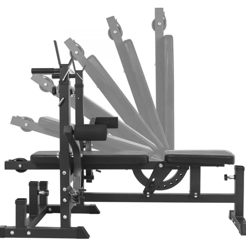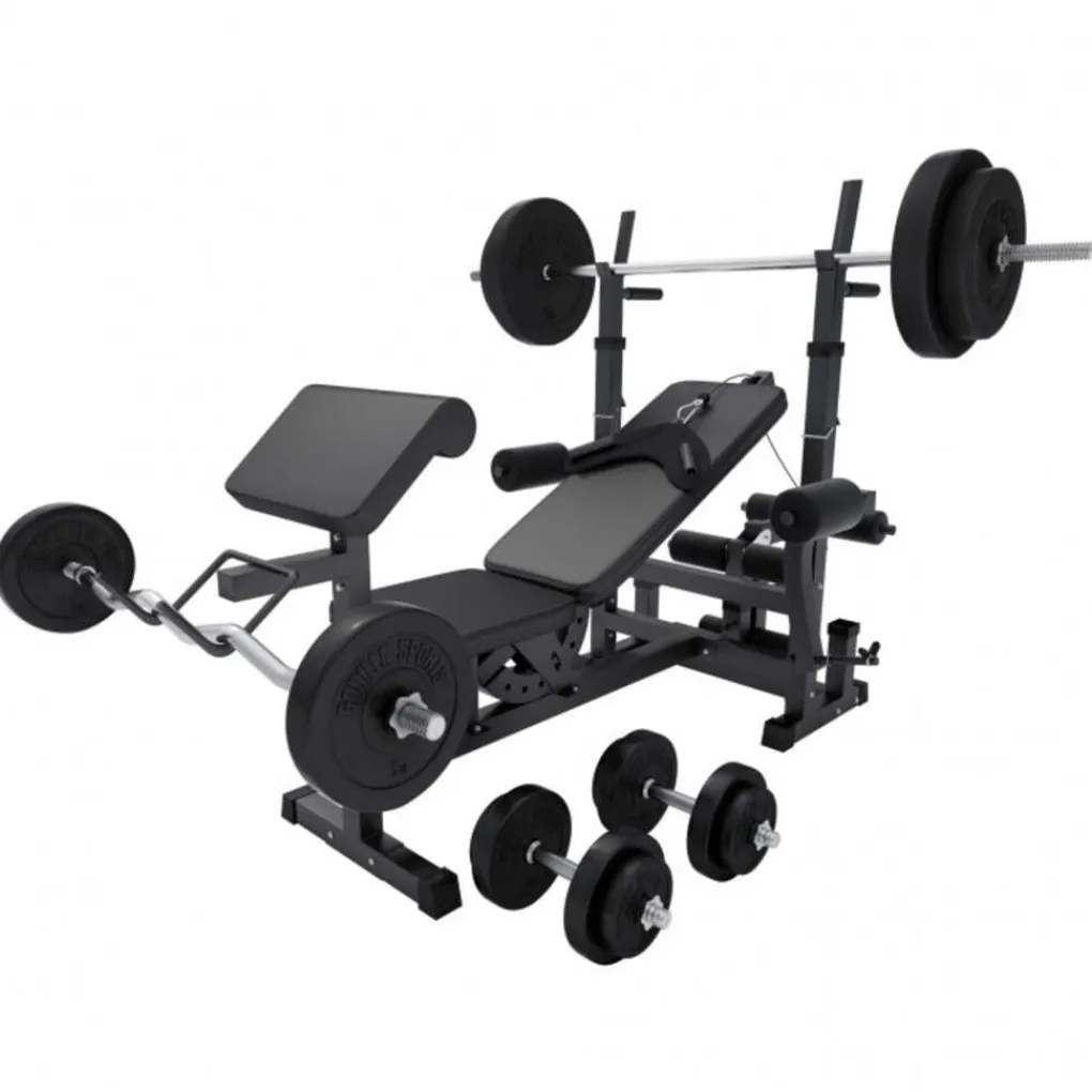 Als je er de voorkeur aan geeft om thuis te trainen, doe je dit natuurlijk het liefst zo efficiënt mogelijk. Niet alleen in je keuze voor oefeningen, maar ook in je keuze voor fitnessmateriaal. Niet iedereen heeft immers een zolder of kelder ter grootte van een sportzaal. Met deze unieke halterbank, geleverd inclusief een 100 kg kunststof halterset, kun je vrijwel je gehele bovenlijf (borst, buik, schouders, biceps en triceps) trainen én bovendien je benen aan pakken. Deze halterbank is van professionele sportschoolkwaliteit, kortom een mùst have voor als je thuis serieus aan de bak wilt!