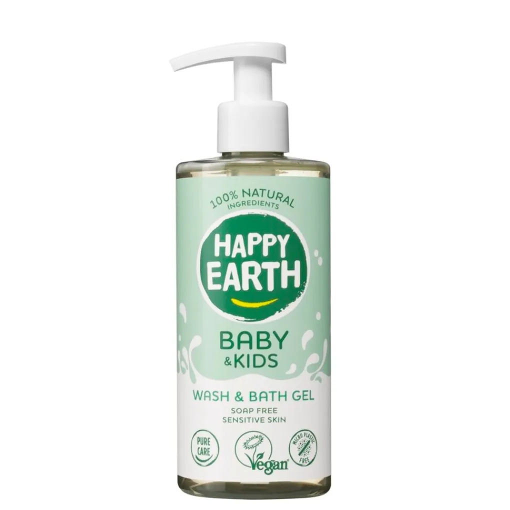 Happy Earth Baby & Kids 100% Natural Wash & Bath Gel biedt een extra milde en verzorgende reiniging. De zeepvrije wasgel is ideaal voor de gevoelige huid van baby’s en kinderen en is direct te gebruiken vanaf de geboorte.