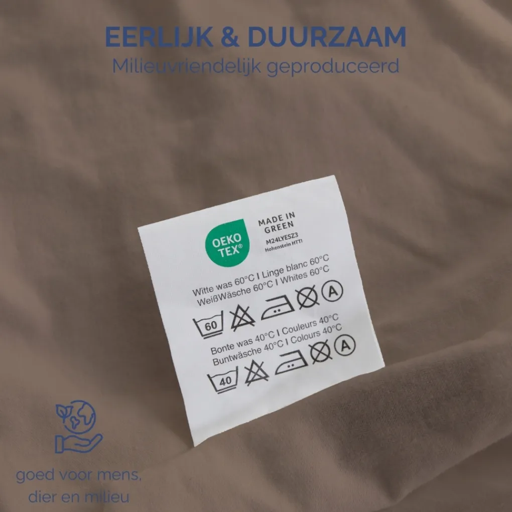 Het Harris&Darwin Jersey hoeslaken beschikt over de Oeko-Tex Made In Green-certificering. Dit keurmerk garandeert:
