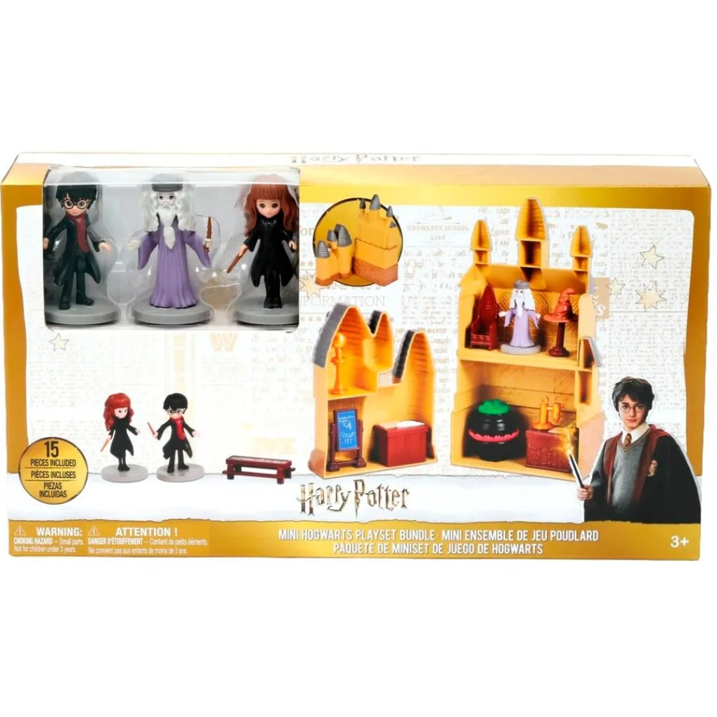 De vijftiendelige Harry Potter Mini-Hogwarts Playset Bundle bevat drie speelfiguren en is geschikt vanaf 3 jaar.