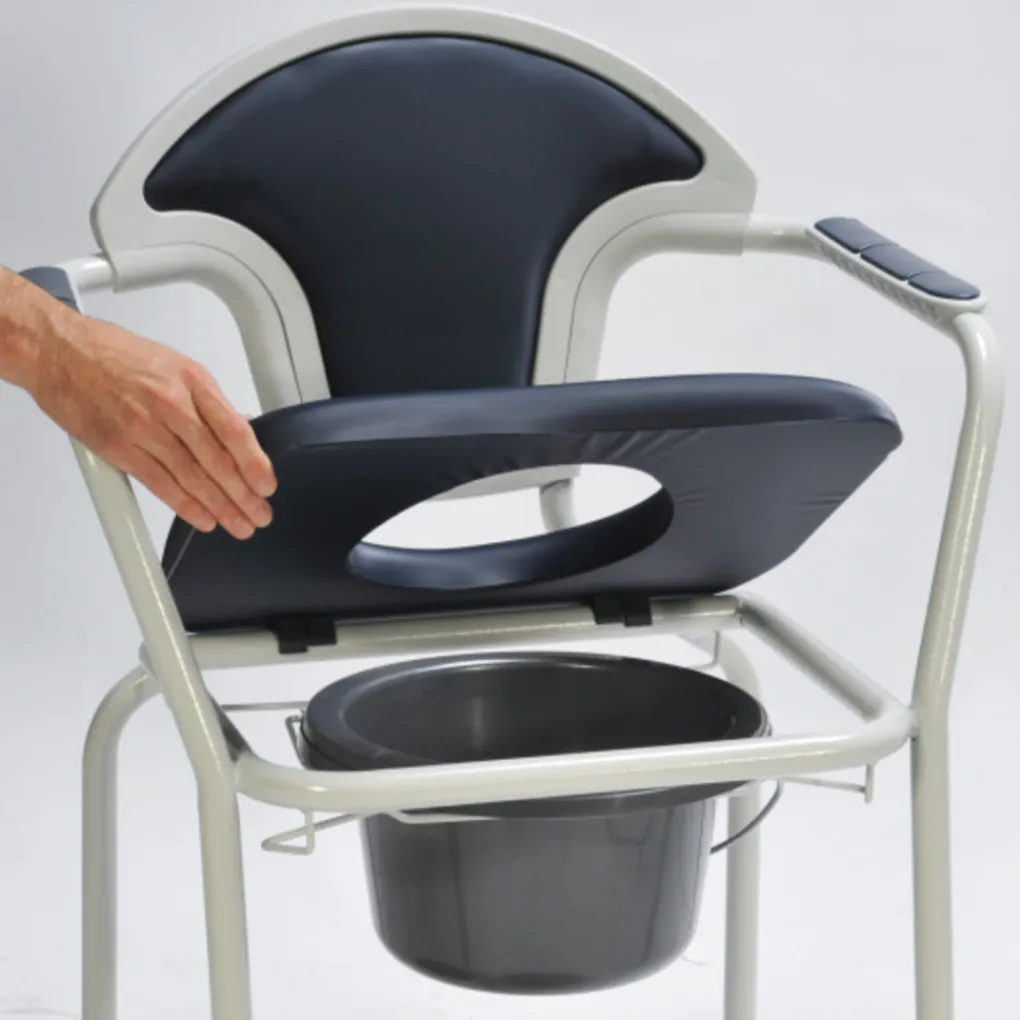 De toiletstoel is comfortabel en heeft een aantal handige eigenschappen. Wanneer iemand niet goed naar het toilet kan lopen en een toilet in de kamer nodig heeft is een toiletstoel een ideale oplossing. U kunt de stoel bijvoorbeeld naar het bed plaatsen. Deze toiletstoel is in hoogte verstelbaar van 46 tot 62 cm. Hierdoor kunt u de zithoogte aanpassen naar een maat die goed bij u past. De stoel is uitgerust met een comfortabele gewatteerde zitting met een uitneembare toiletemmer in het midden. Deze emmer kunt u eenvoudig afdekken met de bijpassende deksel. De stoel heeft een rugleuning en twee stevige armleuningen. Zowel de stoel als de emmer zijn gemakkelijk schoon te maken. Dit product is een medisch hulpmiddel.