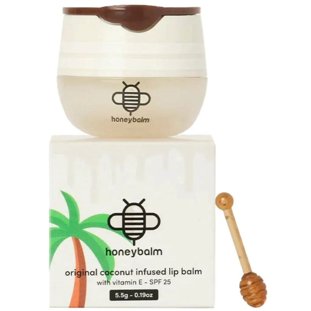 De Honeybalm SPF25 Original Coconut Infused Lip Balm is hydraterend, beschermend en voorzien van SPF 25. Hij houdt je lippen zacht, soepel en beschermd tegen de zon, klaar om de dag te trotseren.