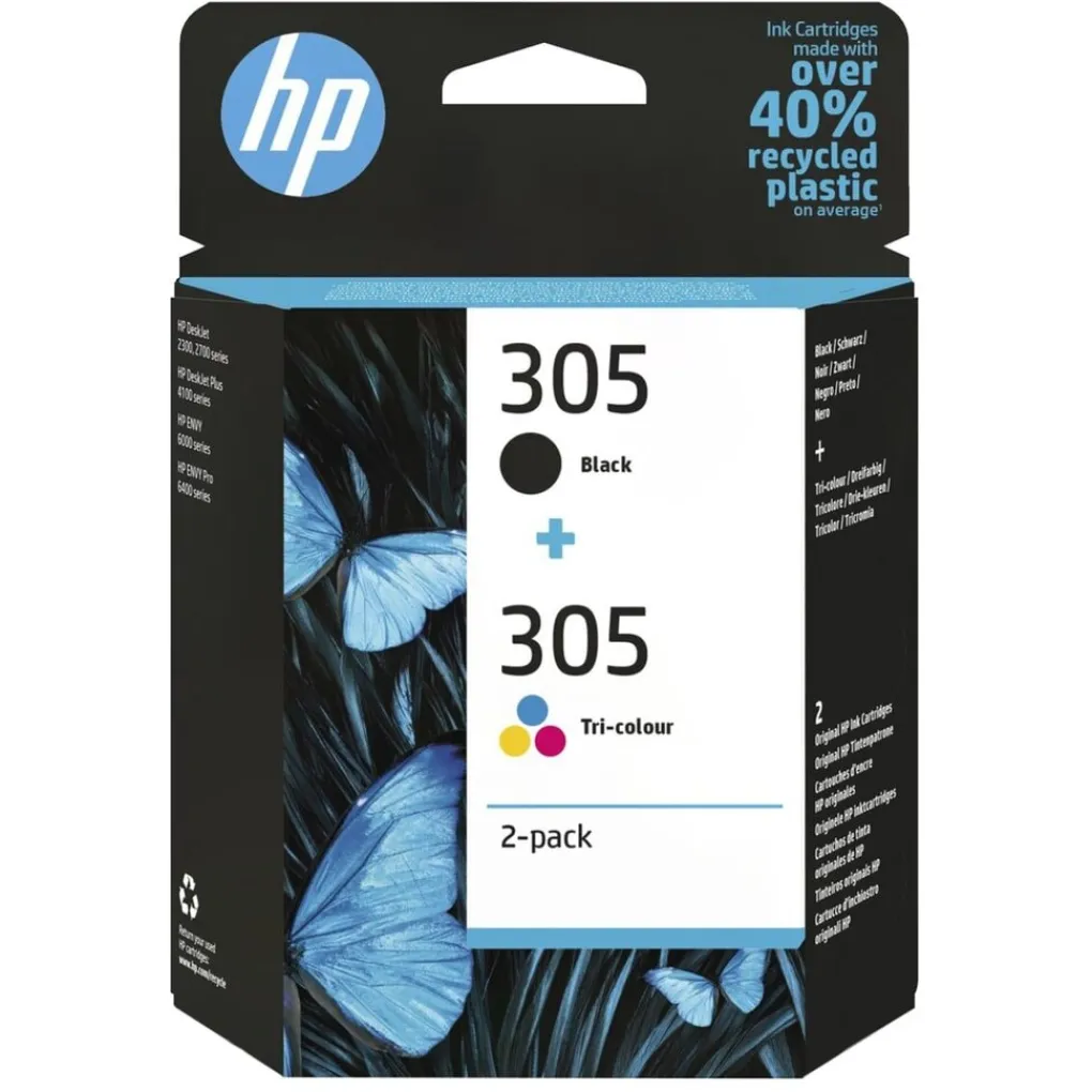 Print je kleurenfoto’s op een levendige manier af. En druk al je teksten met haarscherpe letters. Met het HP 305 Cartridge Combo Pack heb je meteen alle cartridges voor je printer. Voor prachtige kleuren en diep zwart.