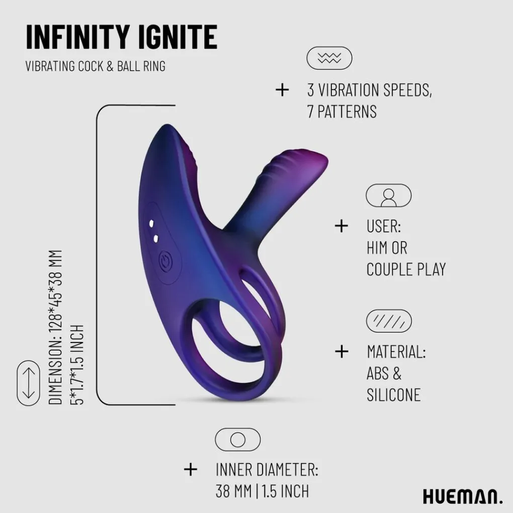 Geniet van een langdurige erectie en intense stimulatie met deze stijlvolle en fantastische vibrerende cockring uit de Hueman-collectie. Het zachte siliconen van deze toy voelt zeer comfortabel aan. De vibrator heeft 10 verschillende vibratiestanden, waarvan 4 snelheden en 6 patronen. Deze zijn eenvoudig in te stellen met de draadloze afstandsbediening.