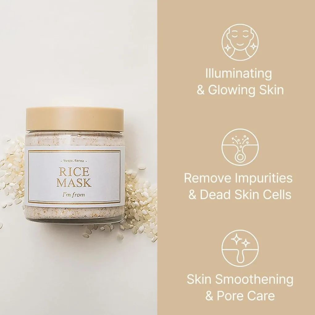 Een milde, exfoliërende wash-off mask met rijstzemelen, ontwikkeld om de huidtextuur te verbeteren, dofheid te verminderen en de huid intens te voeden. Deze crème-achtige formule verwijdert dode huidcellen en onzuiverheden op zachte wijze, terwijl rijstextract de huid hydrateert en verheldert. Na gebruik voelt de huid glad, fris en zichtbaar stralender aan – zonder droog of trekkerig aan te voelen.