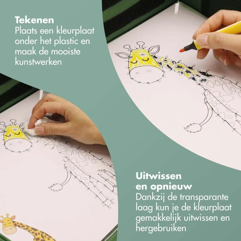 - Transparante laag waardoor kleurplaten herbruikbaar zijn