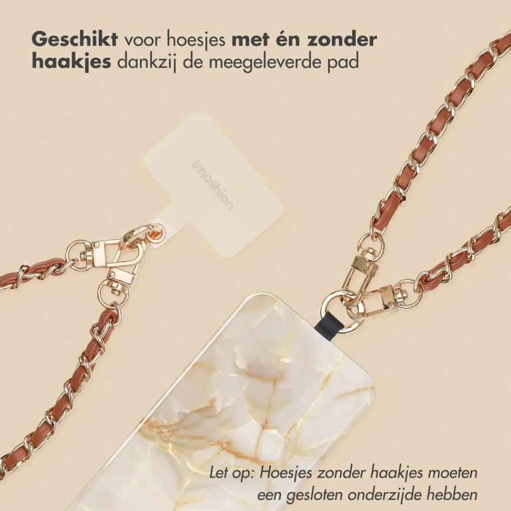 De koorden zijn gemaakt van PU-leer, gevlochten door een metalen ketting, waardoor je smartphone een echt fashion item wordt. Of je nu naar een feestje gaat of je dagelijkse outfit een boost wilt geven, dankzij dit stijlvolle koord maak jij je outfit helemaal af!