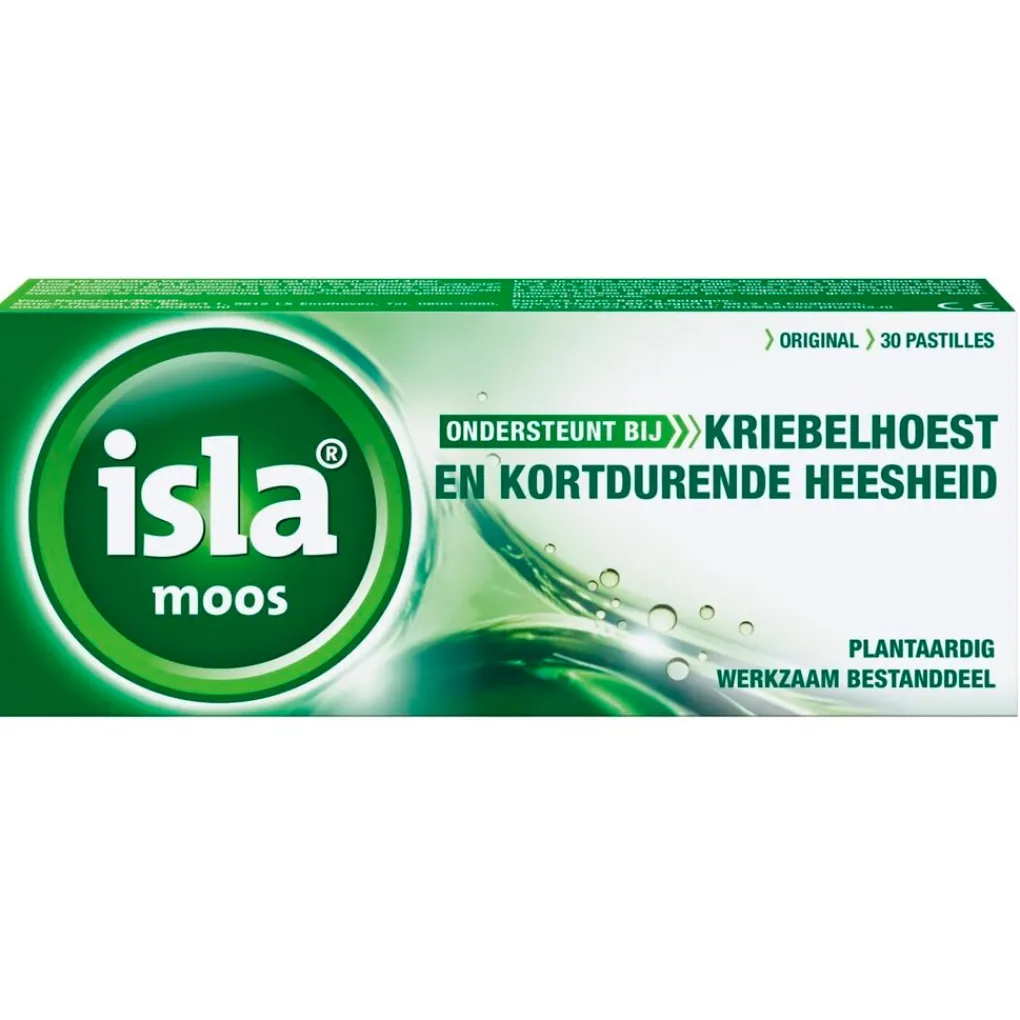 Isla Moos Pastilles ondersteunen bij kriebelhoest en kortdurende heesheid. Ze zijn ook te gebruiken bij belasting van de stem door veelvuldig gebruik (zangers, sprekers, docenten, et cetera.) of een droge lucht (airco/verwarming).