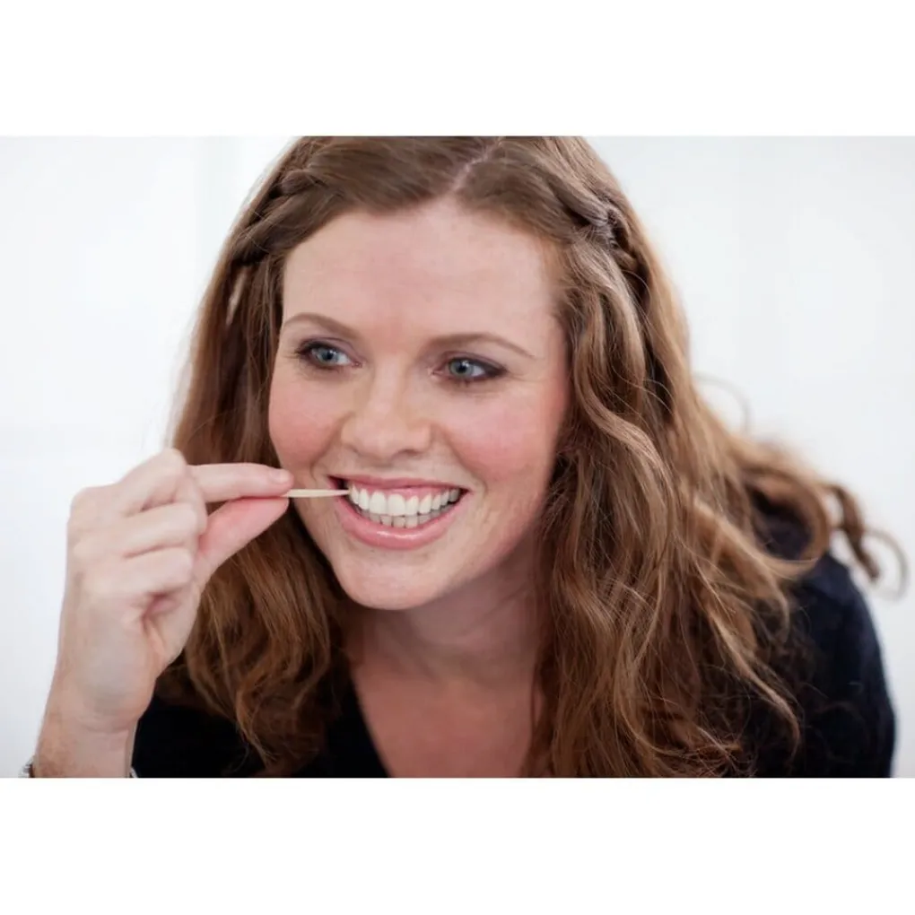 Maak de tandenstoker voor gebruik vochtig in de mond, dit voorkomt breken.