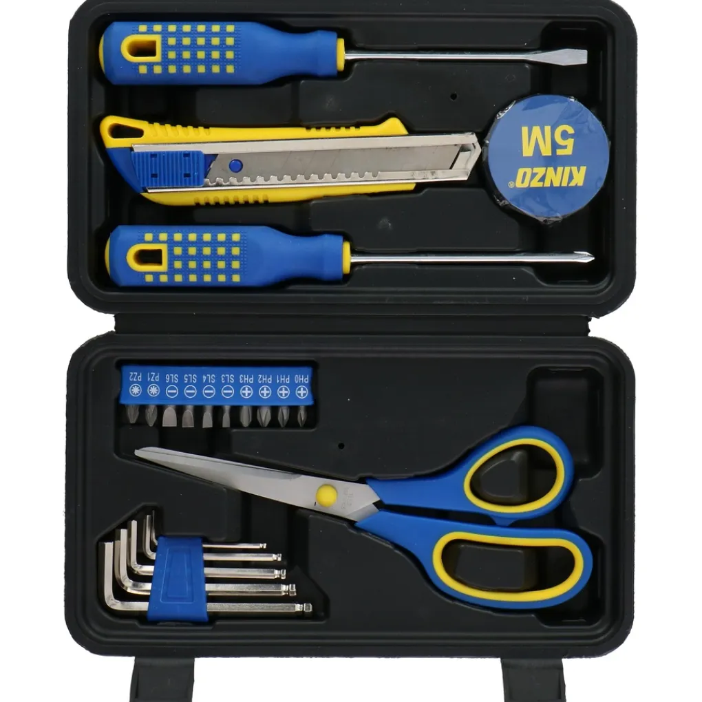De 21 stuks handgereedschap zitten netjes in een degelijke kunststof koffer. Ze hoeven dus niet los in een la rond te slingeren en je hebt ze zo altijd meteen bij de hand. Het gereedschap is gemaakt van stevig staal en robuust kunststof.