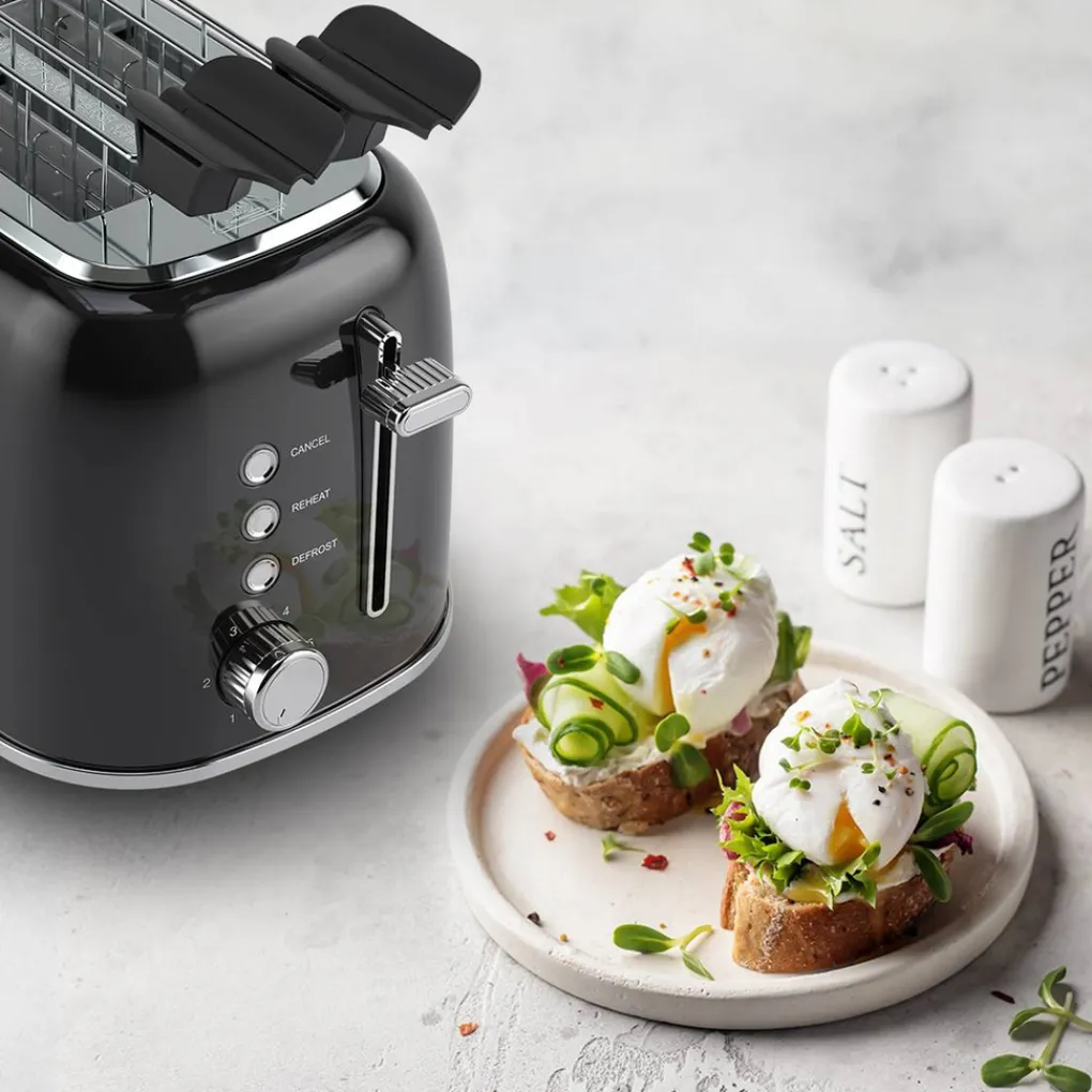 2 brede sleuven De broodrooster heeft 2 brede sleuven. De sleuven hebben een afmeting van 14×3,6 cm. Hierdoor zijn ze onder andere geschikt voor zelfgebakken brood, wafels en bagels! Elke ochtend weer iets nieuws en voor ieder wat wils.