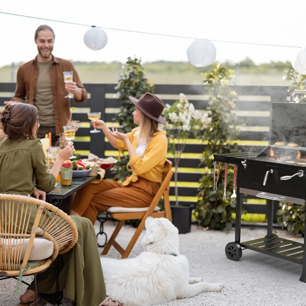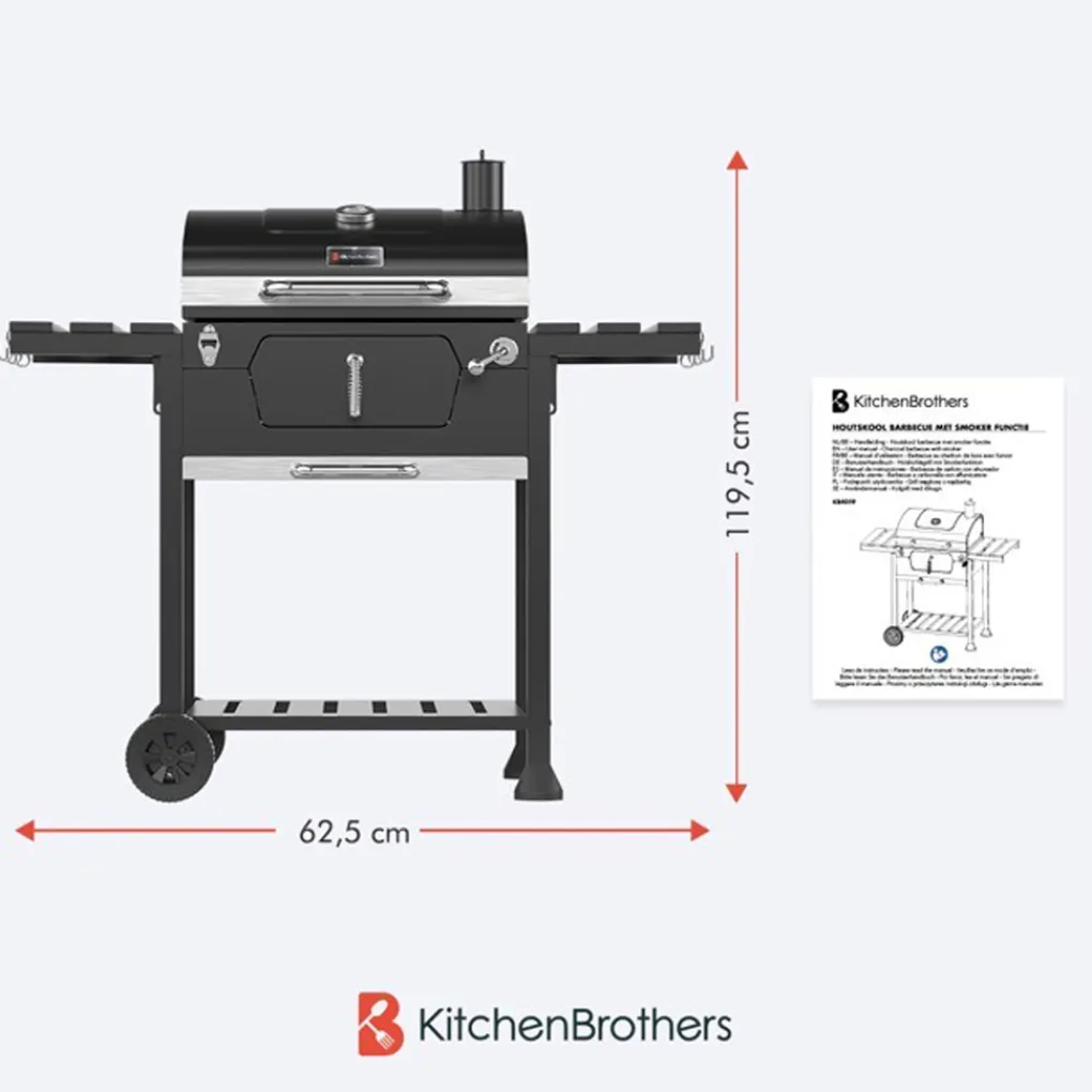 Ontketen een nieuwe dimensie van smaken met de KitchenBrothers houtskoolbarbecue, ontworpen voor ware grillfanaten. Dit veelzijdige meesterwerk biedt niet alleen een royaal grilloppervlak en hoogteverstelbaar kolenrooster, maar transformeert ook moeiteloos tot een authentieke smoker. Geniet van de kunst van het langzaam roken, waardoor je gerechten die onweerstaanbare rooksmaak krijgen dat elk diner overtreft. Ontdek de vrijheid om te experimenteren met smaken en word de grillmeester van onvergetelijke zomeravonden met de KitchenBrothers houtskoolbarbecue en smoker in één.