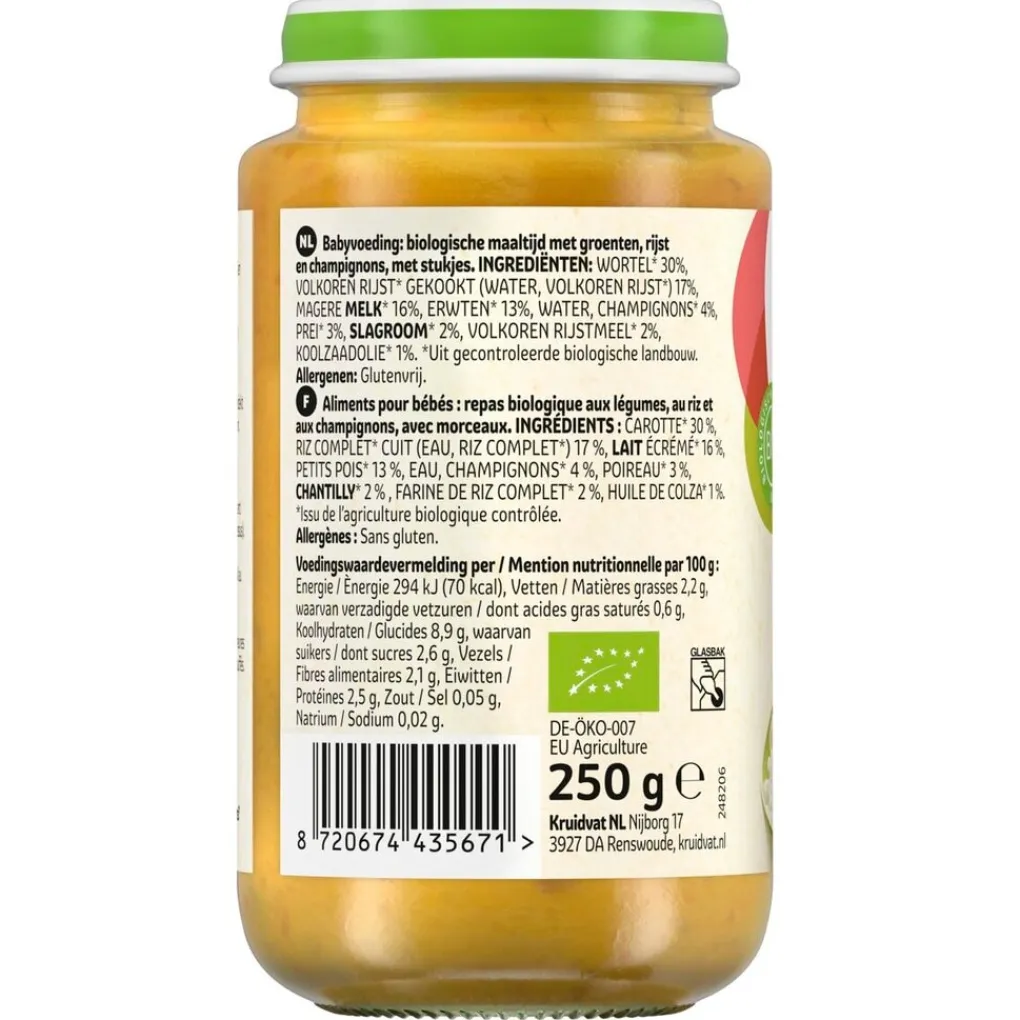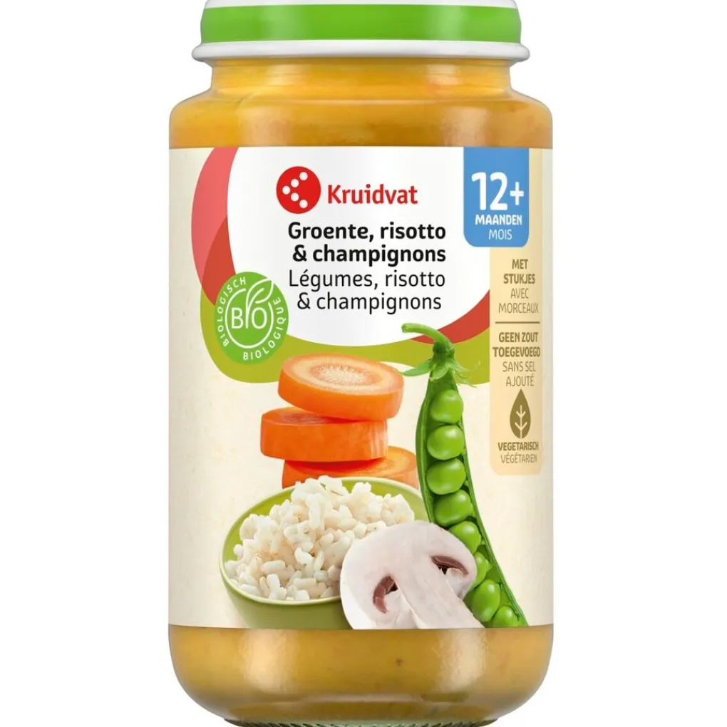 Laat je baby genieten van deze heerlijke Kruidvat 12+M Bio Groente, Risotto & Champignons Maaltijd. De maaltijd is geschikt voor kindjes vanaf 12 maanden.