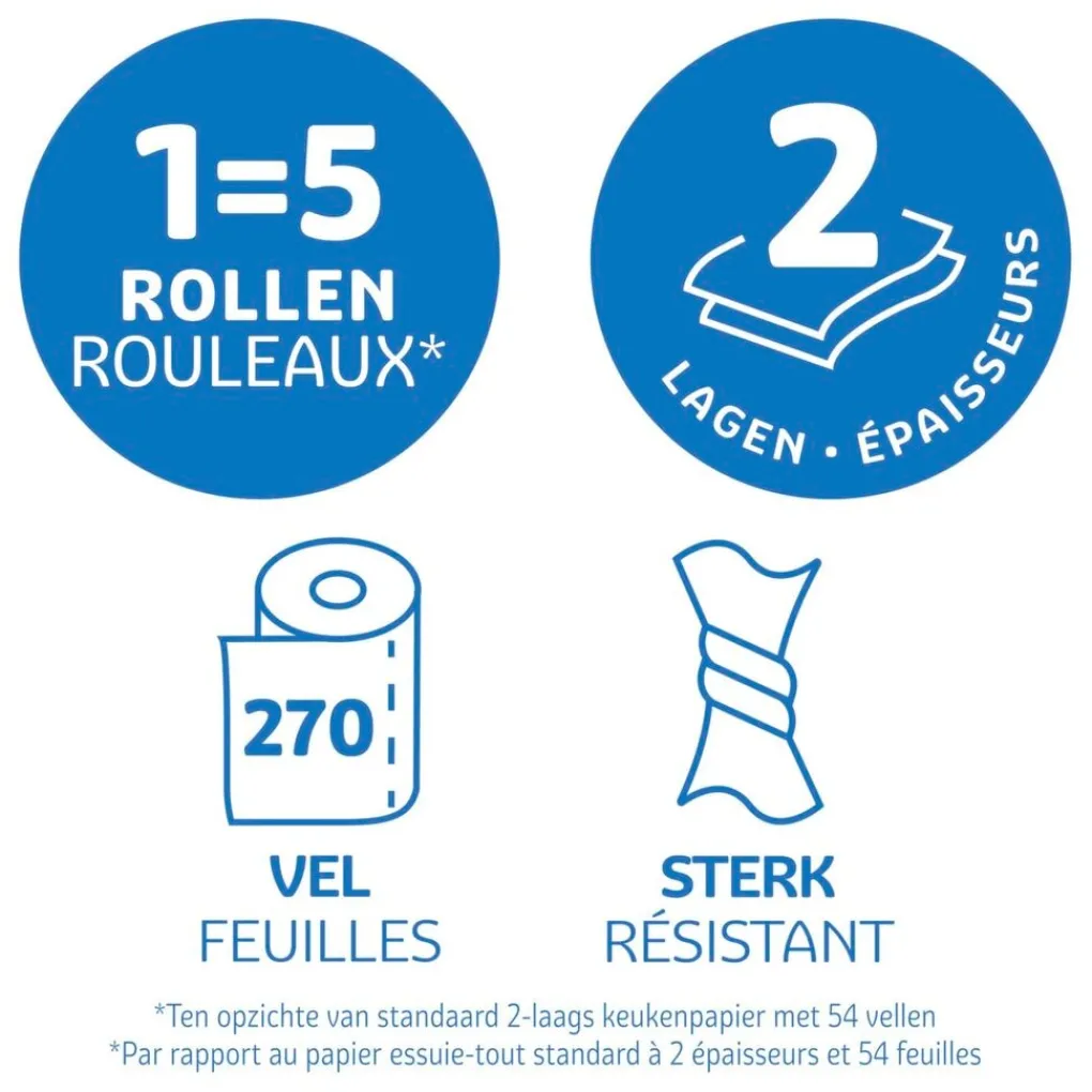 *Vergeleken met een standaard keukenrol met circa 50 vellen.