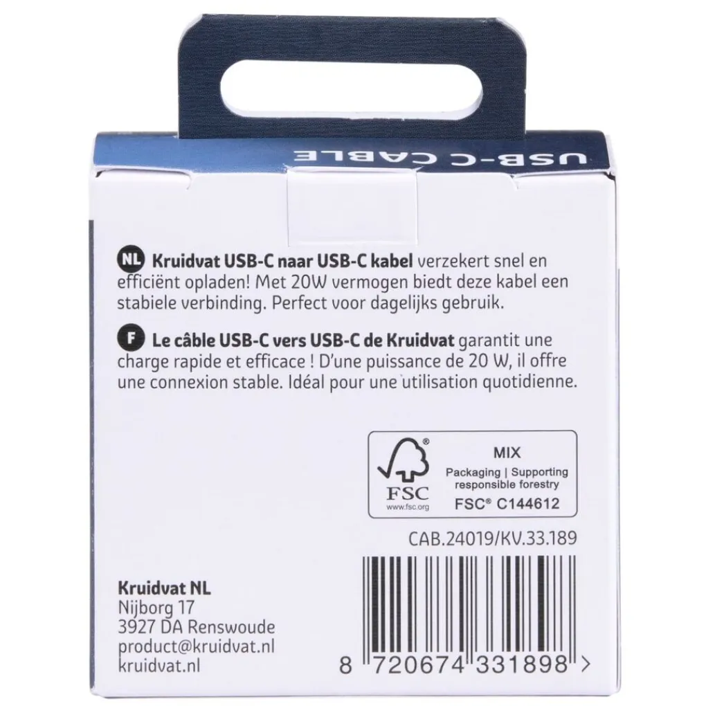 Met een vermogen van 20W biedt de Kruidvat 20W Usb-C-naar-Usb-C Kabel een handige verbinding tussen USB-C apparaten. Ideaal voor dagelijks gebruik.
