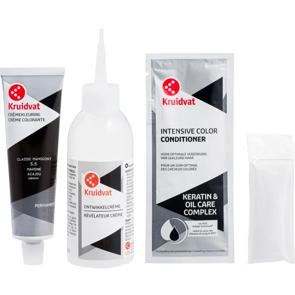 Geef je haar een volle, diepe kleur, een perfecte grijsdekking en een natuurlijk resultaat met Kruidvat 5.5 Mahonie Crème Haarkleuring.