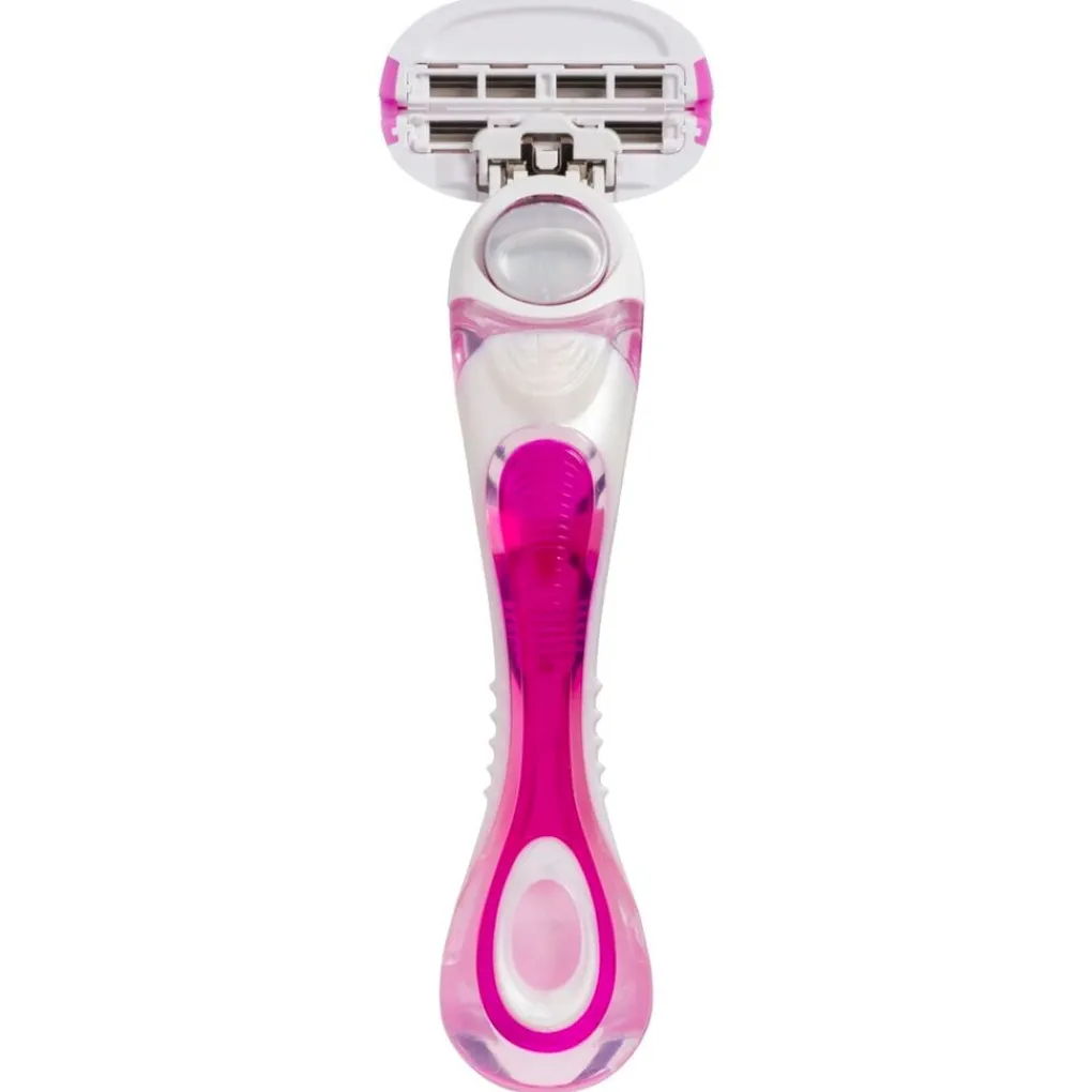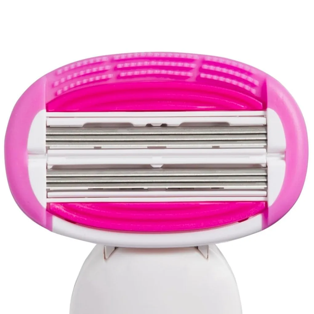 De beweegbare kop volgt precies de contouren van je lichaam, terwijl de ergonomisch vormgegeven handgreep zorgt voor een goede grip. Het scheerapparaat heeft een handig bewaardoosje, waarin je de scheermesjes veilig en hygiënisch opbergt.