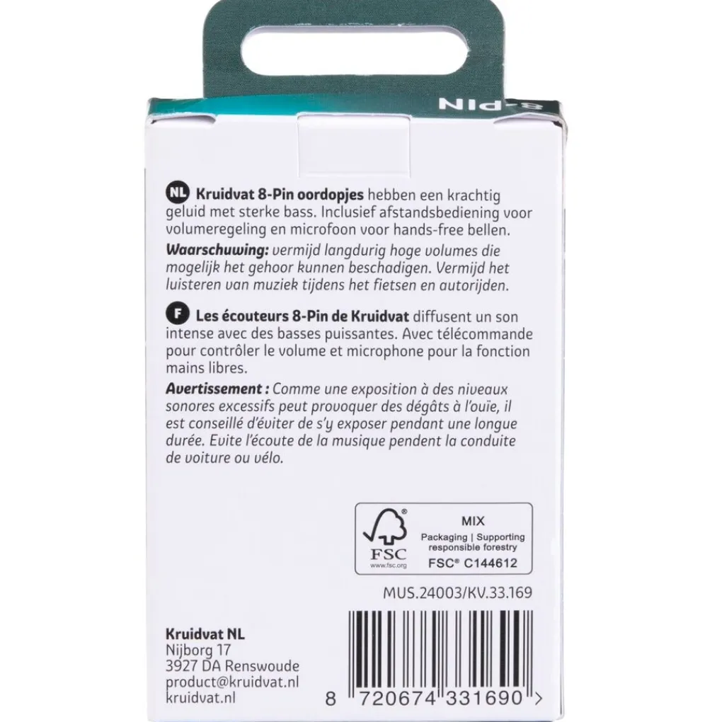 Kruidvat 8-pin earphones non-mfi 1 stuk