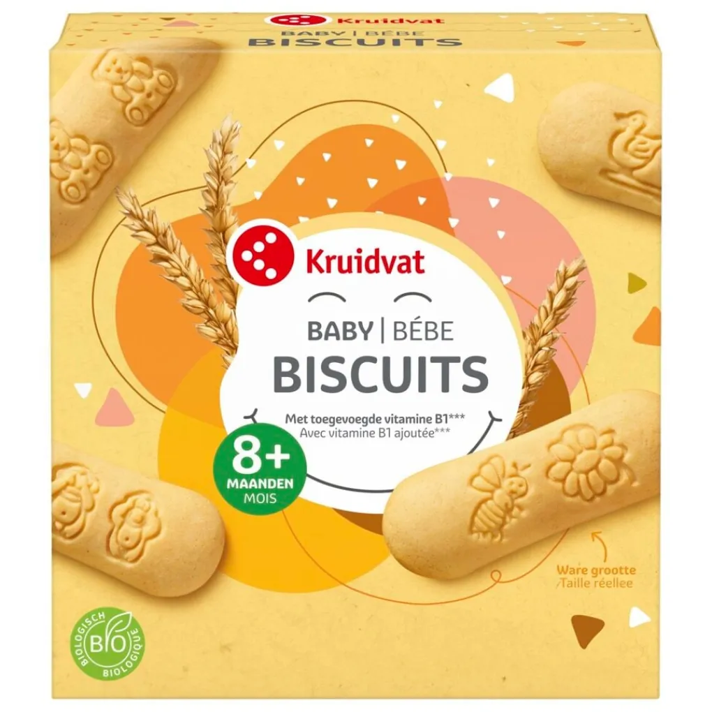 Geef je kind een lekker tussendoortje met deze Kruidvat 8+M Bio Babybiscuits. De koekjes met toegevoegde vitamine B1 zijn geschikt voor kindjes vanaf 8 maanden.