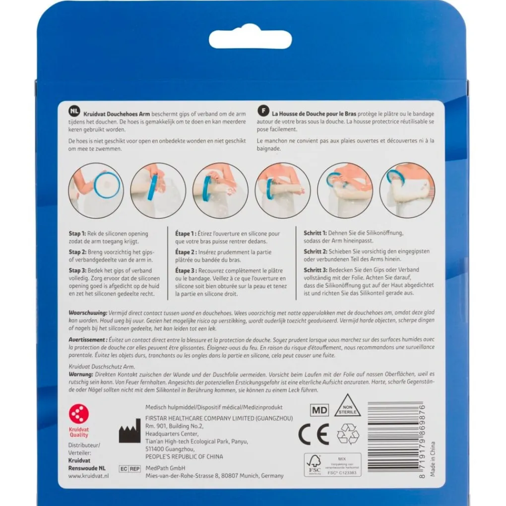 De Kruidvat Arm Douchehoes beschermt je gips of verband om je arm tijdens het douchen. De hoes is gemakkelijk om te doen en kan meerdere