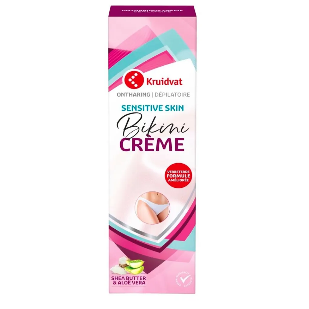 Onthaar mild, maar effectief je gevoelige bikinilijn met de Kruidvat Bikini Ontharingscrème voor de Normale en Gevoelige Huid. Je haartjes worden voor langere tijd verwijderd en je hebt minder snel last van stoppeltjes.
