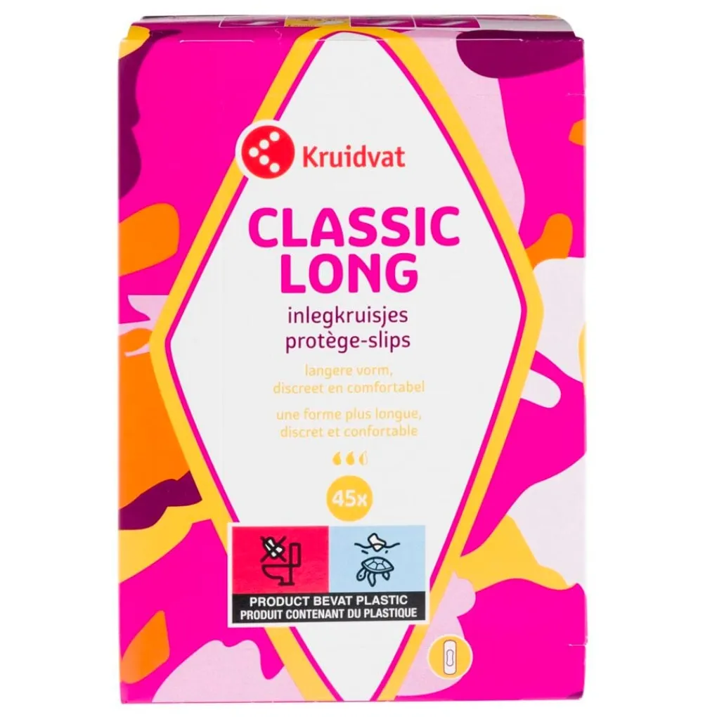 Kruidvat Classic Long Inlegkruisjes zijn langer dan normaal en daardoor extra betrouwbaar. Door het unieke Dry Feel bovenlaagje worden vocht en geurtjes direct opgenomen. Voor een langdurig droog en fris gevoel.