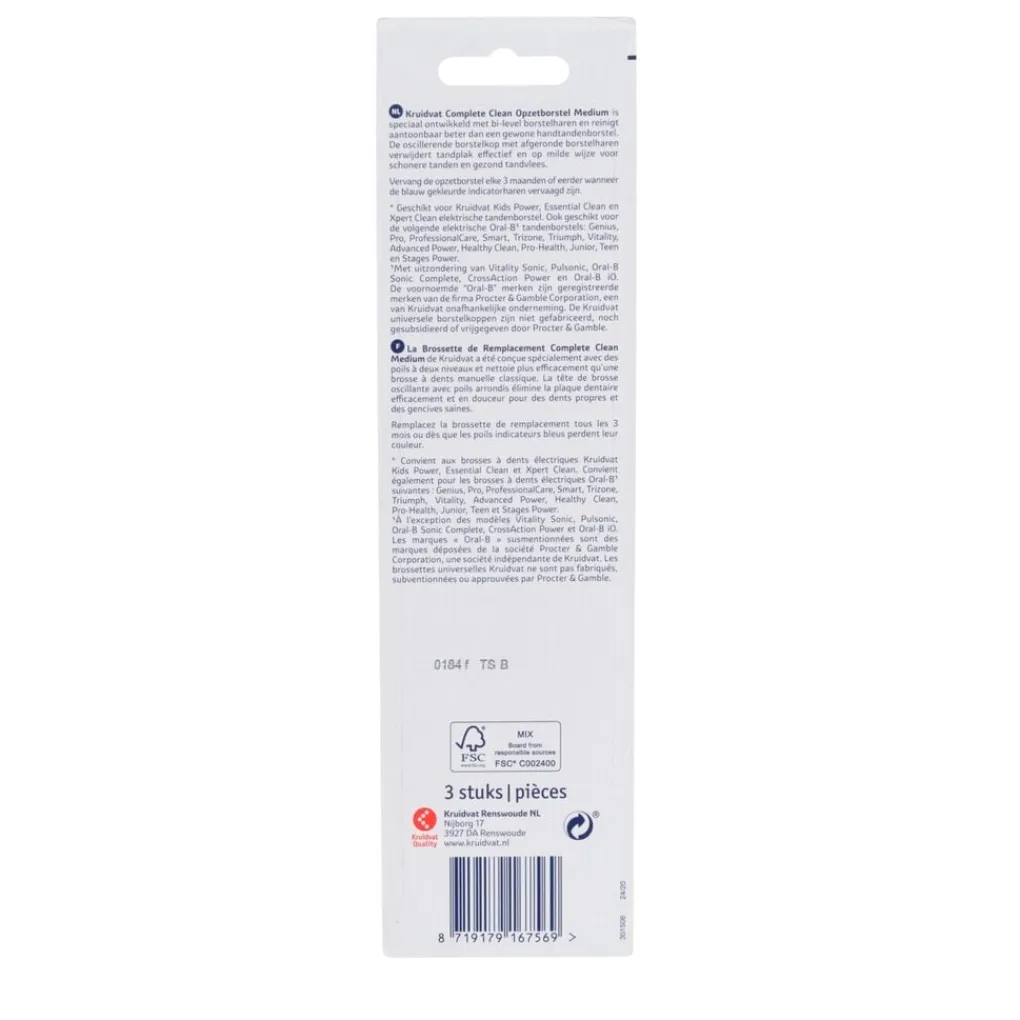 KRUIDVAT COMPLETE CLEAN OPZETBORSTEL 3 ST DOOS