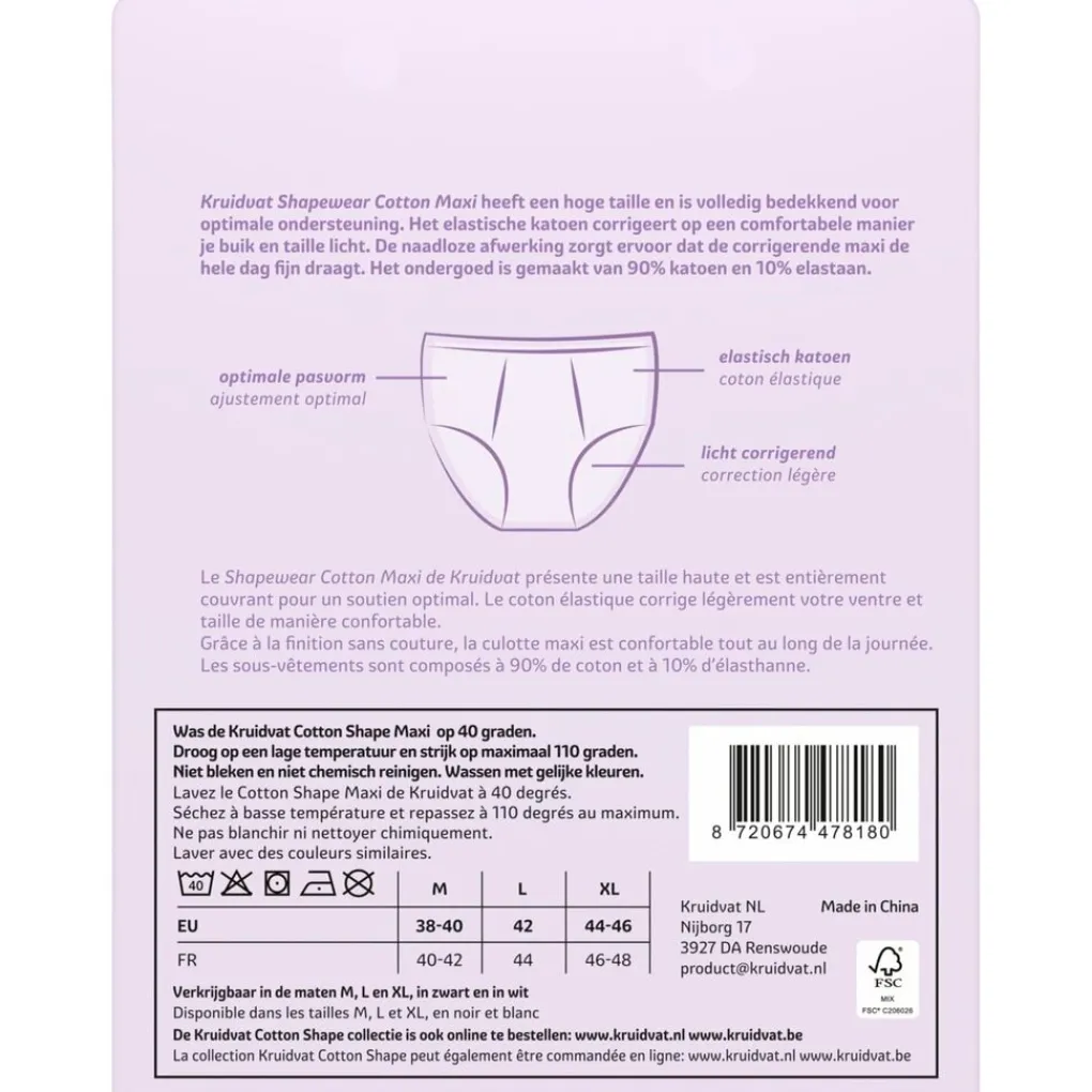 De Kruidvat Cotton Maxi Shapewear Damesslip heeft een hoge taille en is volledig bedekkend voor optimale ondersteuning. Het elastische katoen corrigeert op een comfortabele manier je buik en taille licht.