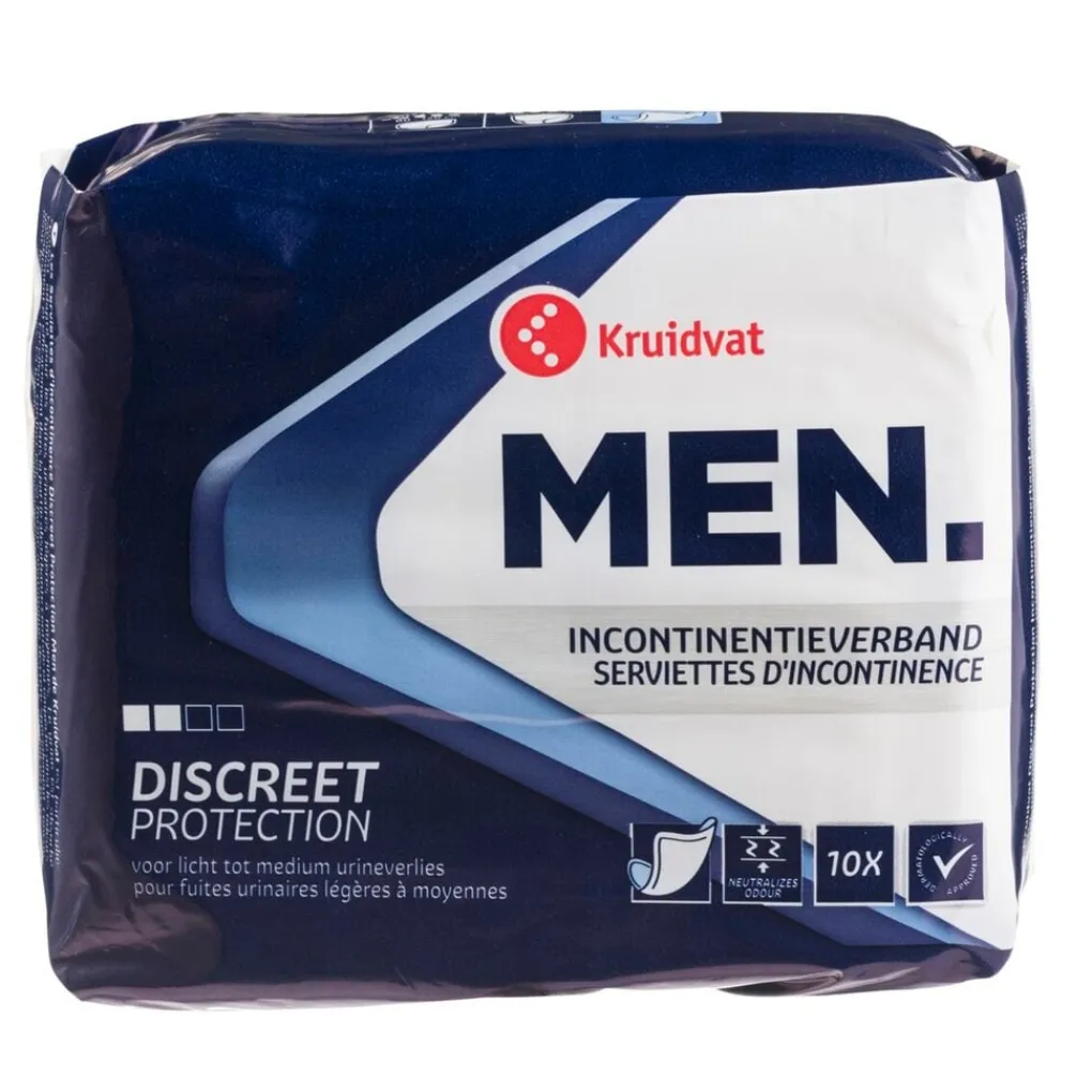 Het Kruidvat Discreet Protection Men Incontinentieverband wordt in een neutrale verpakking geleverd.