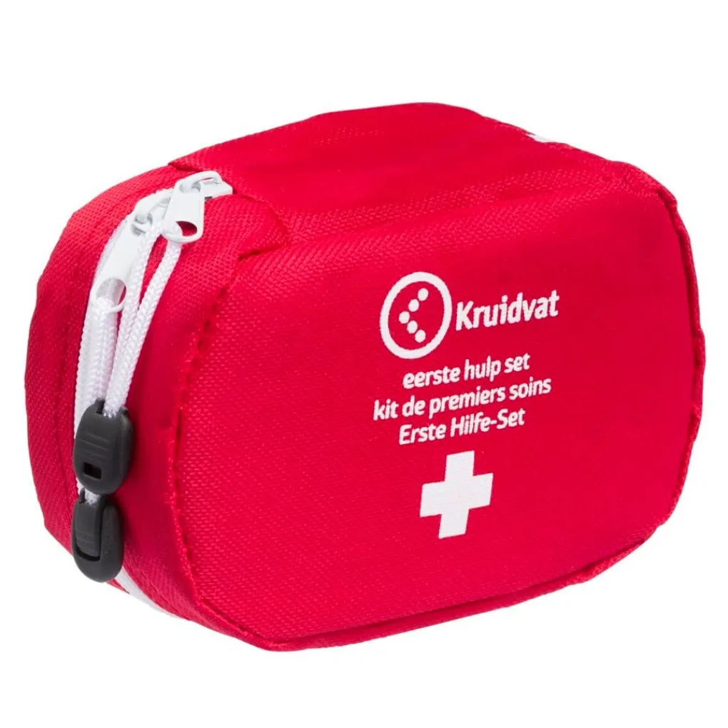 Dit praktische tasje biedt direct hulp bij de behandeling en verzorging van kleine ongelukken in en rondom je huis. De Kruidvat Eerste Hulp Set bevat onder andere verband, pleisters, een schaar, alcoholdoekjes en een EHBO-boekje.