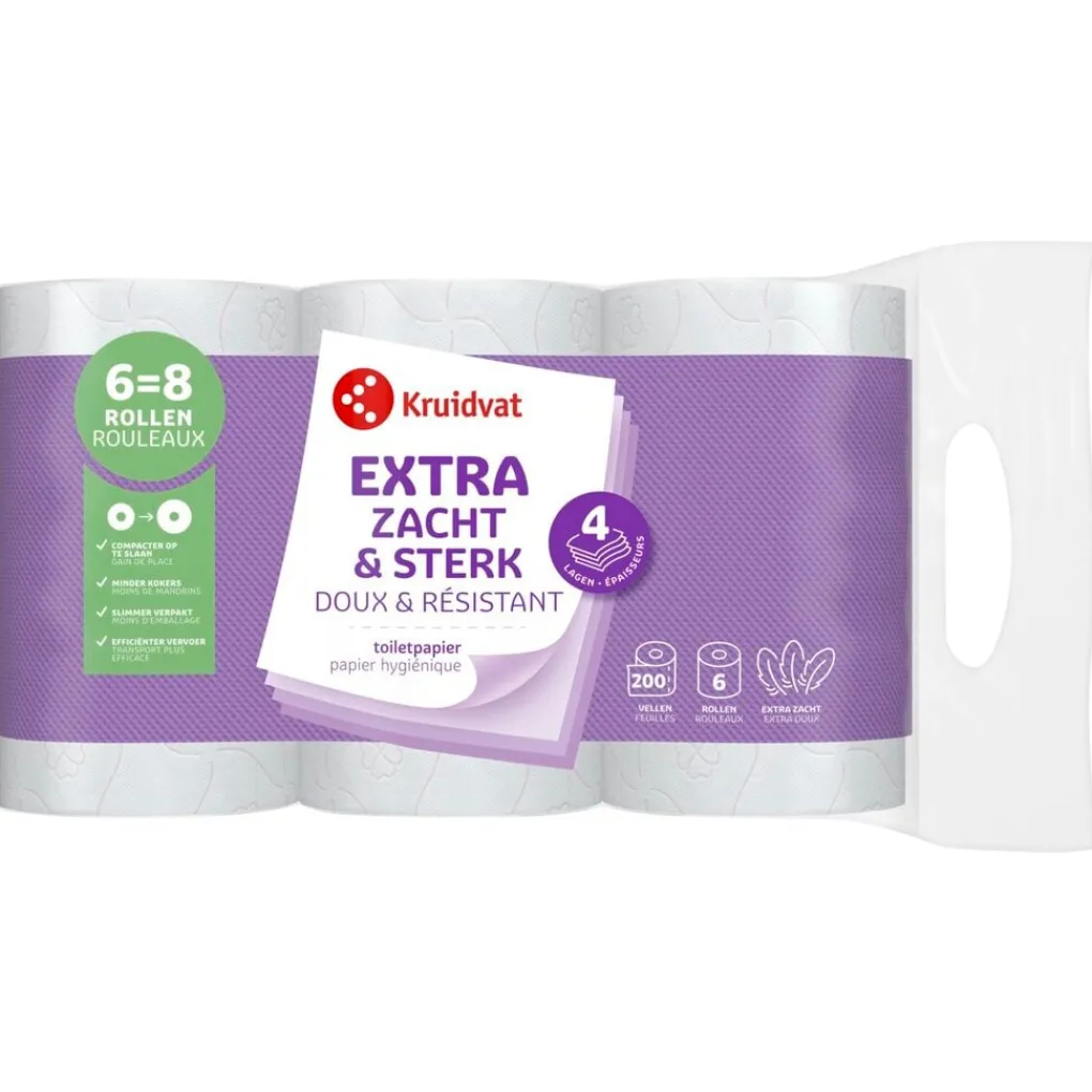 Kruidvat Extra Zacht & Sterk 4-Laags Toiletpapier is gemaakt van vier lagen, waardoor het extra zacht en sterk is.